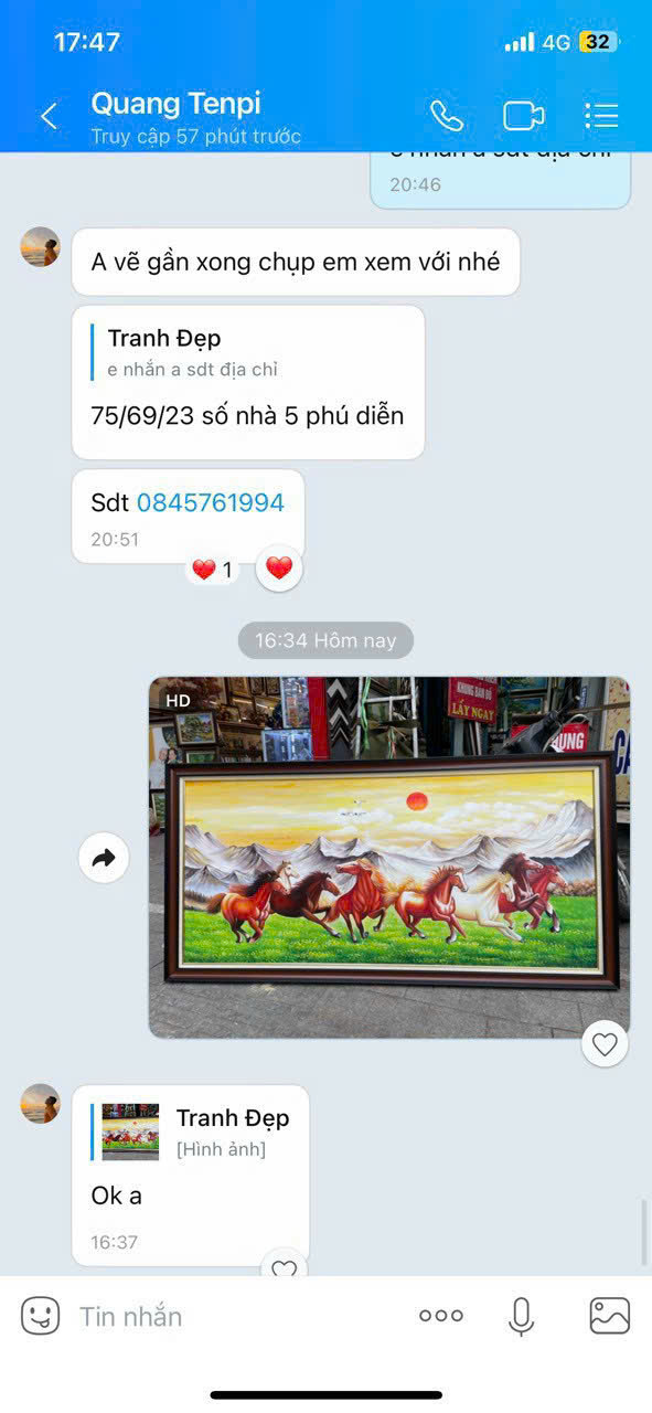 Em vừa nhận được tran rồi ạ! Phải nói là tranh đẹp hơn cả mong đợi luôn, tranh đẹp, khung tranh tinh tế và sang trọng. Cảm ơn shop đã chuẩn bị thật chu đáo, chắc chắn em sẽ tiếp tục ủng hộ những lần sau! Chúc shop luôn đắt hàng nha!