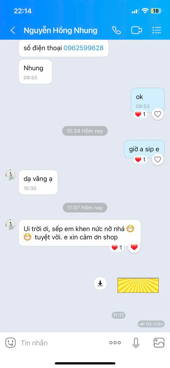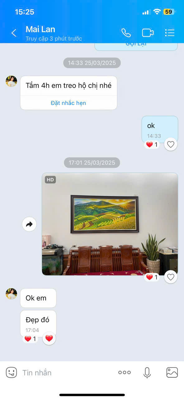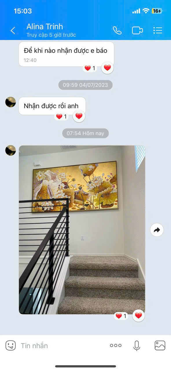 “Shop ơi, tranh quá ạ! Màu sắc hài hòa, hiện đại trẻ trung nhẹ nhàng, nhìn là thấy ưng liền luôn. Cảm ơn shop đã tư vấn nhiệt tình và giao hàng đúng hẹn. Nhận được tranh hoa sen mà thấy cả ngày vui hơn hẳn! Sẽ tiếp tục ủng hộ shop dài dài!”