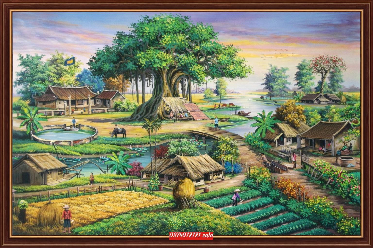 Cuối cùng, tranh đồng quê còn mang lại các giá trị tuyệt vời về mặt phong thủy. Những yếu tố quen thuộc tạo nên bức tranh như con sông, cây cối xanh tươi… có thể mang lại tài lộc, là yếu tố “vượng khí” quan trọng trong phong thủy.