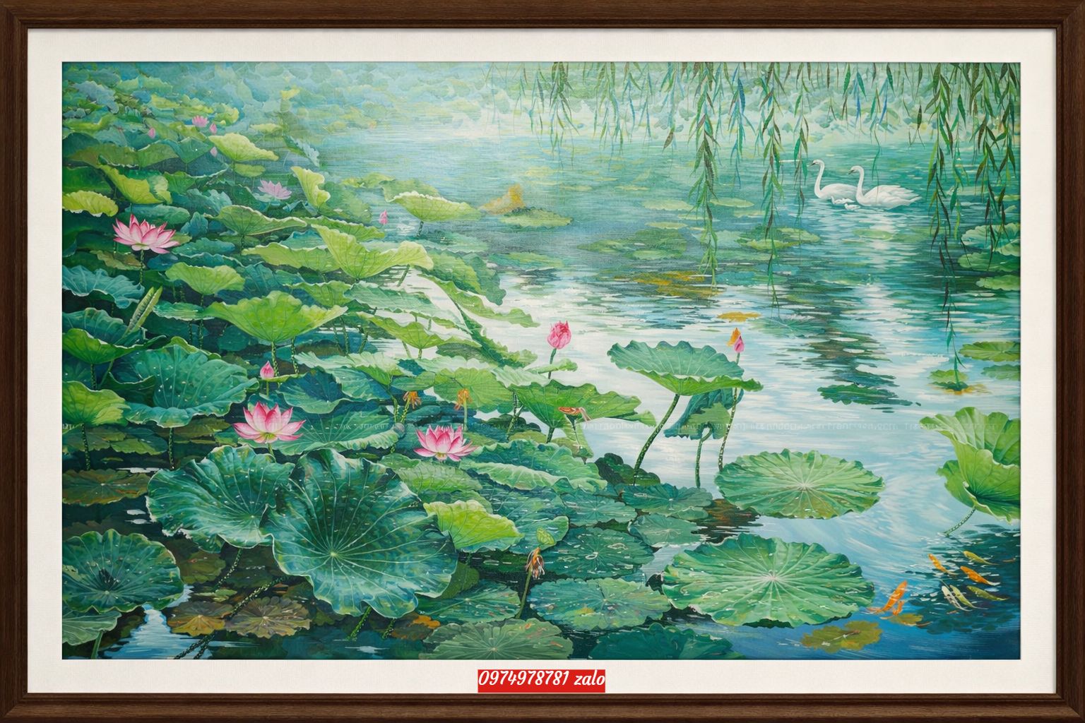 Tranh hoa sen sơn dầu đẹp phòng khách