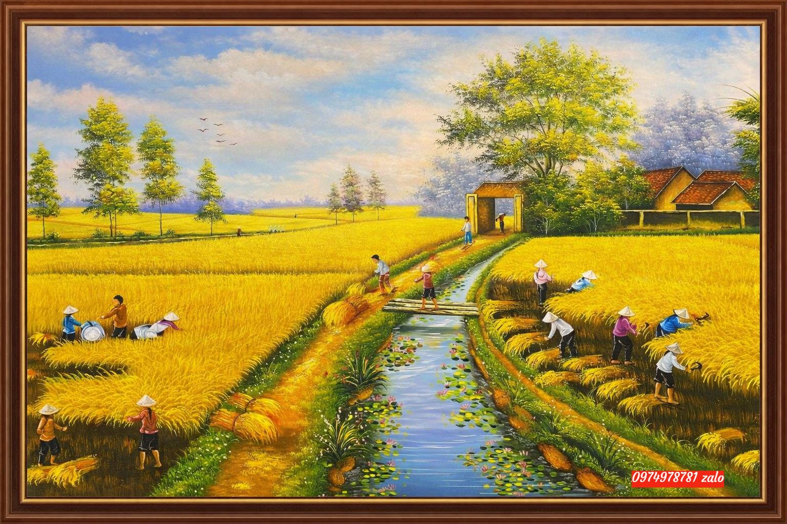 tranh mùa màng bội thu Tranh phong cảnh đồng quê Tranh phong cảnh đồng quê lúa chín vàng đẹp ý nghĩa tranh treo phòng khách mang đến sang trọng tài lộc mùa màng bội thu