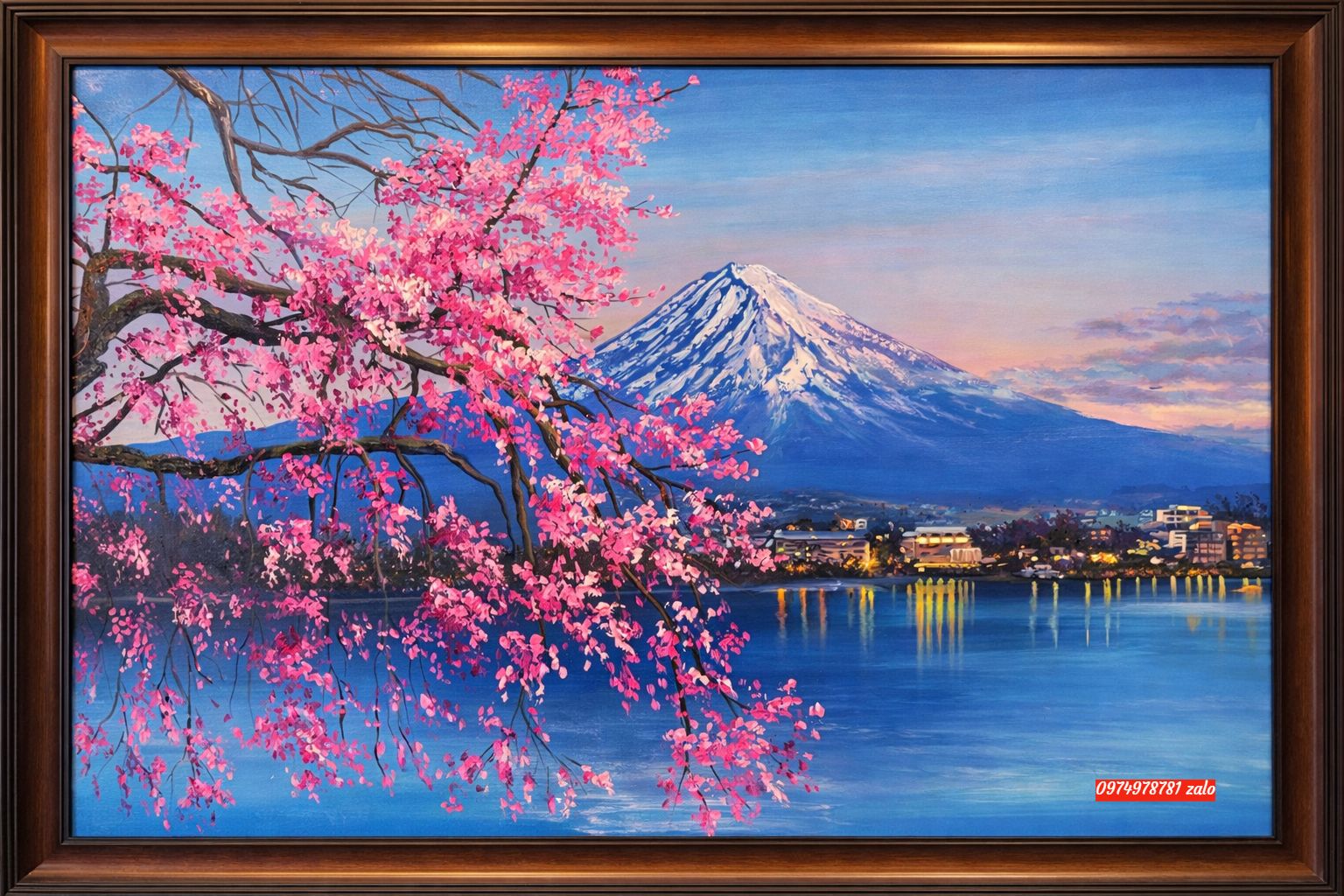 Tranh núi Phú Sĩ phong cảnh là một trong những dòng tranh nghệ thuật được nhiều người yêu thích nhờ vẻ đẹp hùng vĩ và ý nghĩa sâu sắc. Núi Phú Sĩ không chỉ là ngọn núi cao nhất Nhật Bản mà còn là biểu tượng văn hóa, tinh thần của đất nước mặt trời mọc. Khi được tái hiện trong hội họa, hình ảnh ngọn núi phủ tuyết trắng cùng khung cảnh thiên nhiên xung quanh tạo nên một bức tranh vừa thanh bình vừa ấn tượng.