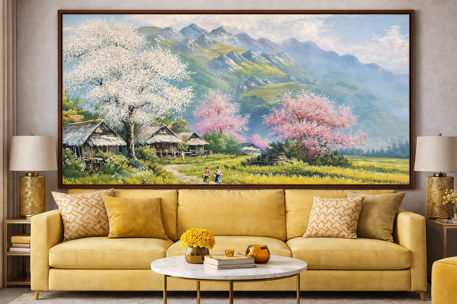 Treo tranh phong cảnh Tây Bắc SN11 trong nhà hay văn phòng giúp không gian sống thêm thoáng đãng và giàu giá trị nghệ thuật.