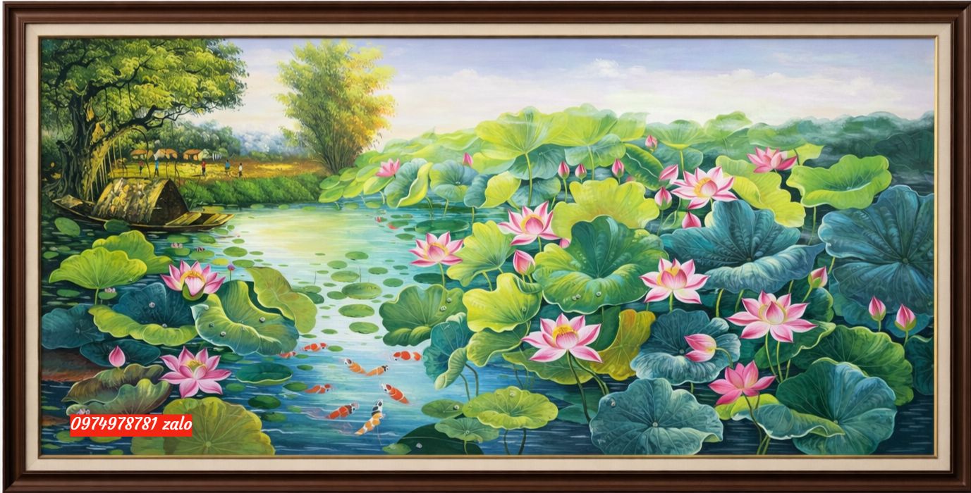 Tranh sen hay tranh hoa sen phong cảnh là một trong những dòng tranh nghệ thuật được yêu thích nhất trong trang trí nội thất hiện nay. Với hình ảnh đầm sen xanh mát, những bông hoa sen nở rộ giữa mặt nước trong trẻo tạo nên một khung cảnh thiên nhiên yên bình và đầy sức sống. Tranh hoa sen phong cảnh không chỉ mang vẻ đẹp nhẹ nhàng, thanh thoát mà còn thể hiện nét văn hóa truyền thống của người Việt. Khi treo trong phòng khách, phòng làm việc hoặc phòng ngủ, tranh sen giúp không gian trở nên ấm cúng, thư thái và gần gũi với thiên nhiên.